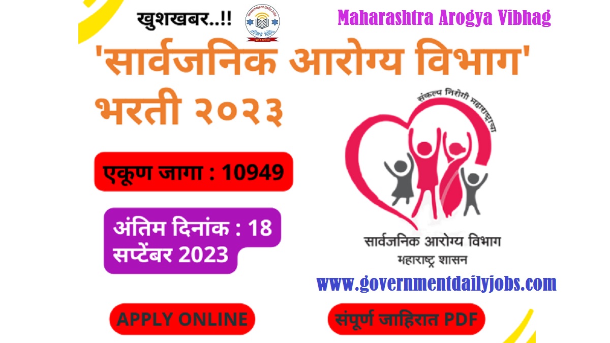The Maharashtra Arogya Vibhag (Health Department) is inviting applications for 10949 Group C and Group D vacancies. The online application process will close on September 18, 2023.